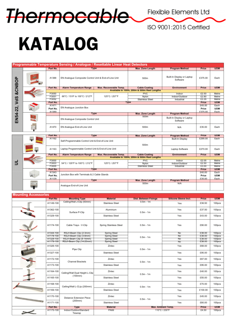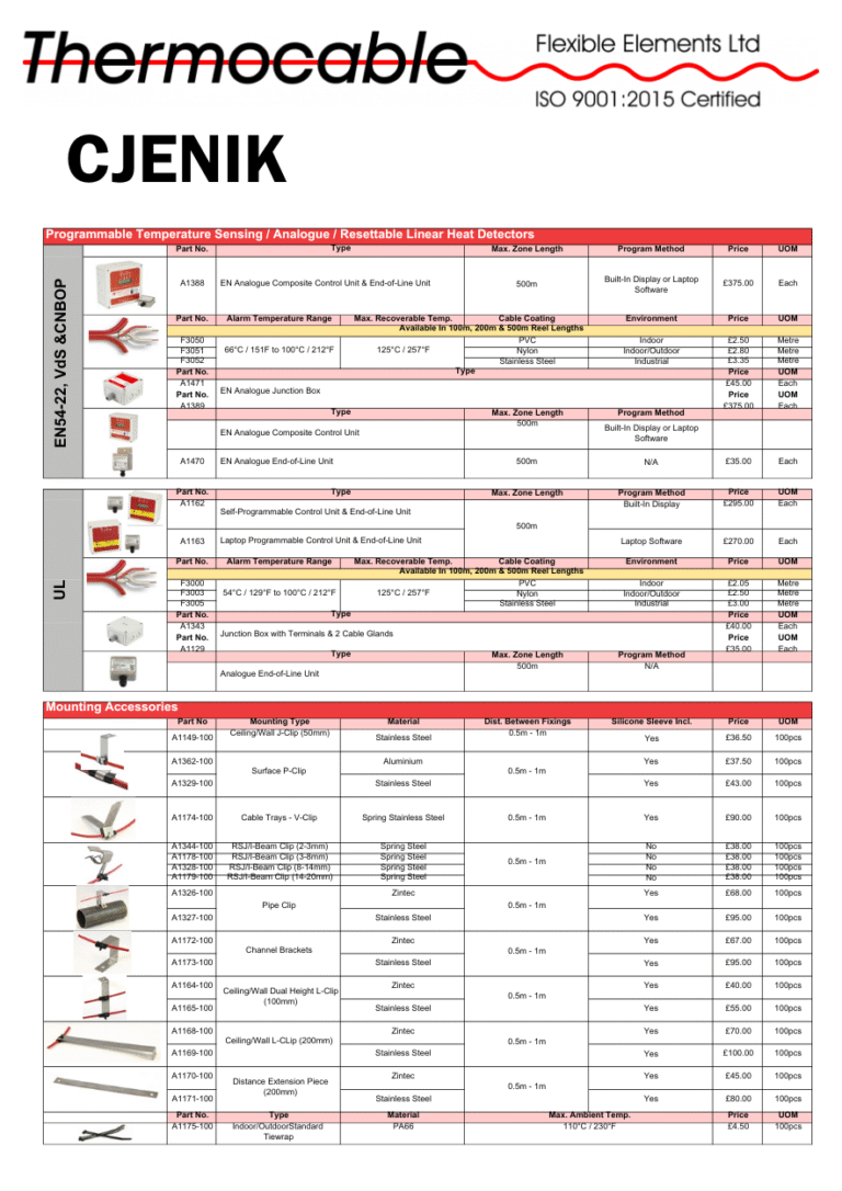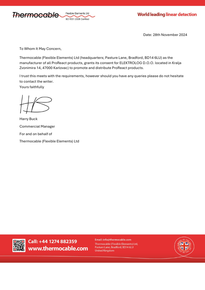 Thermocable je svjetski poznat proizvođač kabela za linearnu detekciju, koji je svoje proizvode prilagodio Europskom tržištu. ProReact EN Analogni i ProReact EN Digitalni su 2 vrste linearne detekcije. Osnovna razlika je u tome što se kabel ProReact EN Analogni ne mora mijenjati nakon alarma sve dok kabel nije izložen temperaturi višoj od svoje maksimalne temperature koja se može obnoviti od 125 ⁰C. Kabel doseže od minimalnih 30 do maksimalnih 500 m neprekidne dužine. Odobren prema EN 54-22. ProReact EN Digitalni mora se mijenjati nakon alarma. Odobren prema EN 54-28.