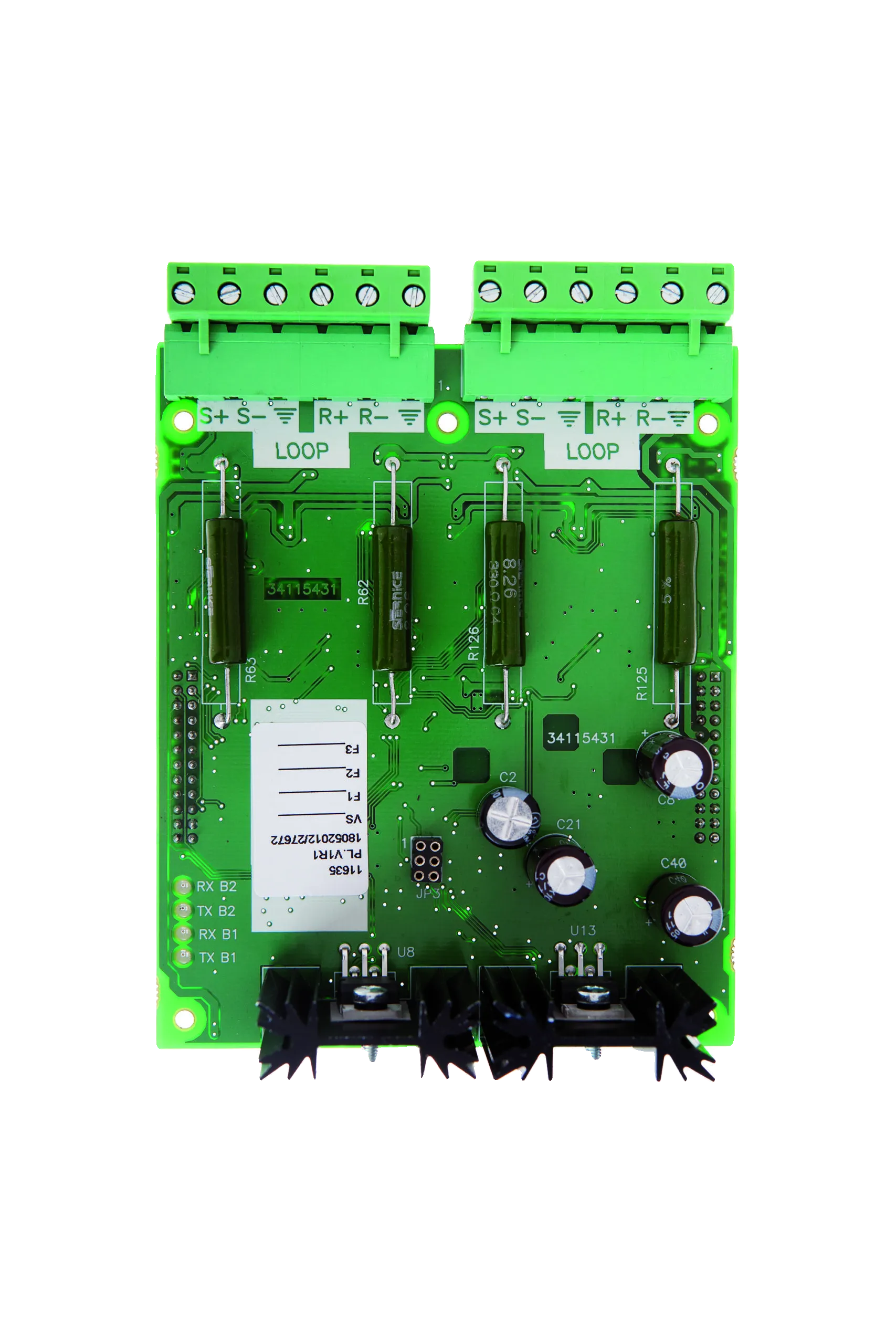 Mikroprocesorska kartica za proširenje s 2 petlje (500 adresa). 250 adresa po petlji (detektori, moduli, sirene i ručni javljači požara). Za upotrebu u CAD-150-8 i CAD-150-8-PLUS.