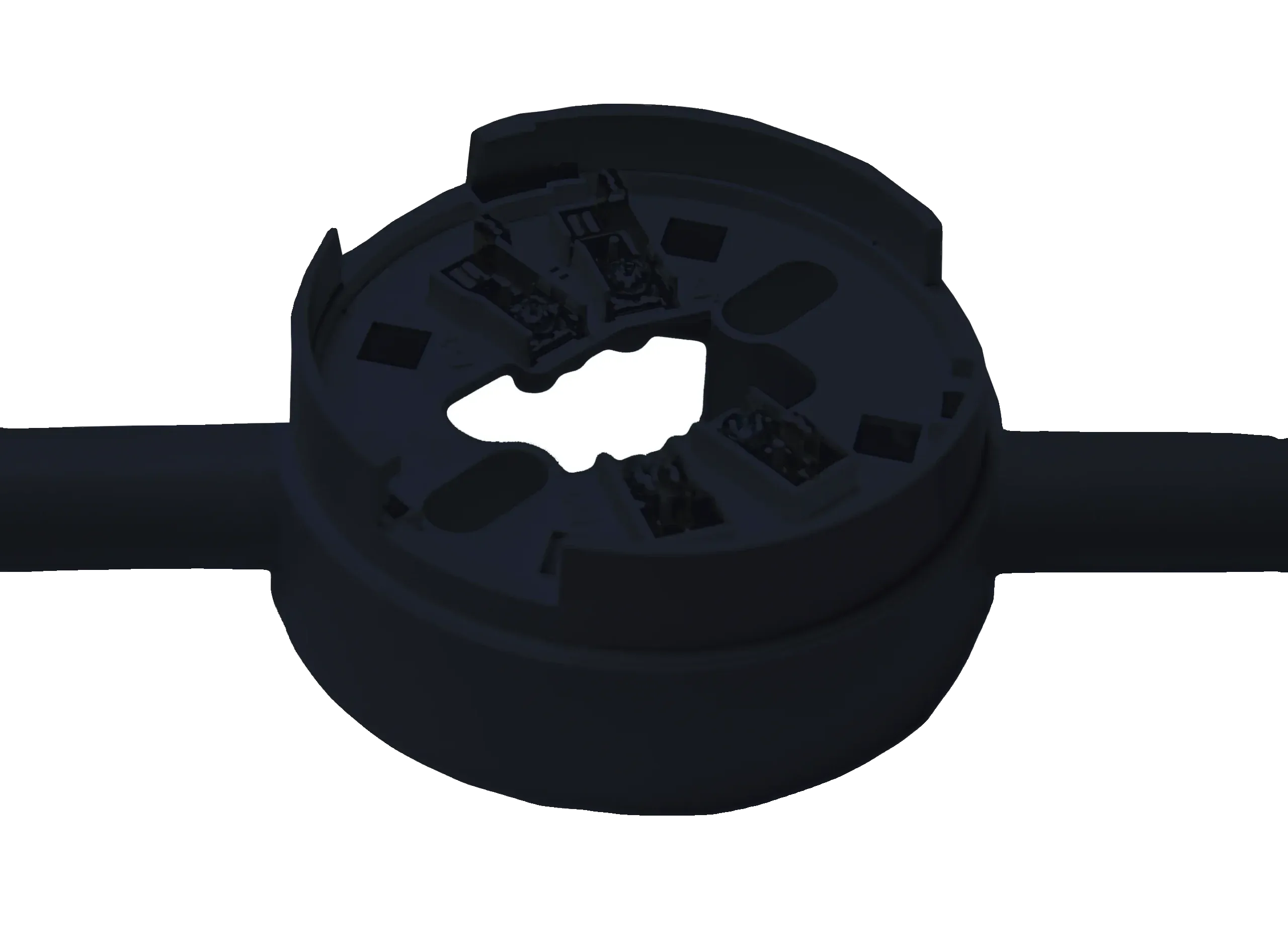 Duboka podnožja za detektore serije 200-B i 200A-B. Sustav zaštite od krađe. Kontakti od nehrđajućeg čelika. Crna boja. Dimenzije: 5 x 100 mm.